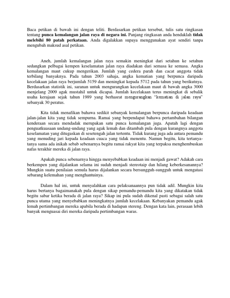 Ulasan Pt3 Punca Kemalangan Jalan Raya Skor A Bm Spm Pt3
