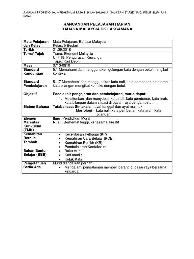 Doc Rancangan Pelajaran Harian Bahasa Malaysia Encik Emjaywai Academia Edu
