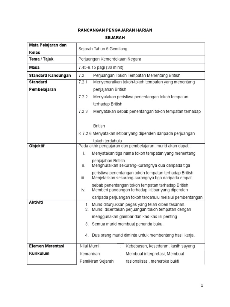 Doc A Rph Sejarah Thn 5 Docx Mem Mm Academia Edu
