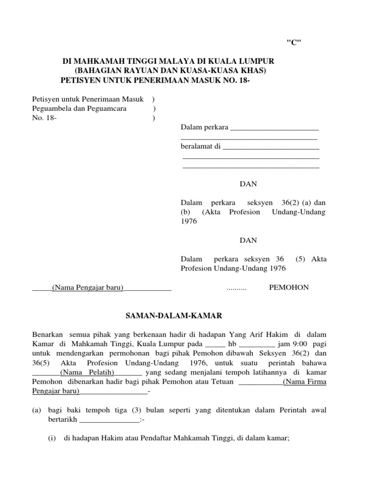 Contoh Saman Pemula Pengangkatan