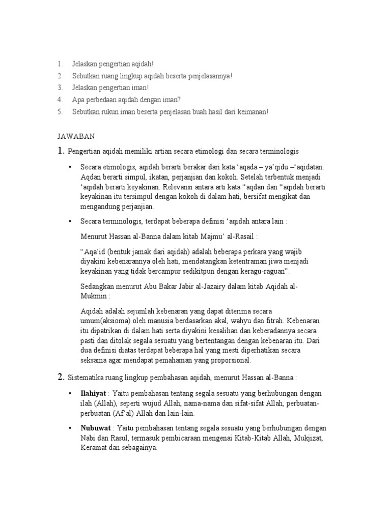 Sebutkan Dan Jelaskan Ruang Lingkup Aqidah Islam