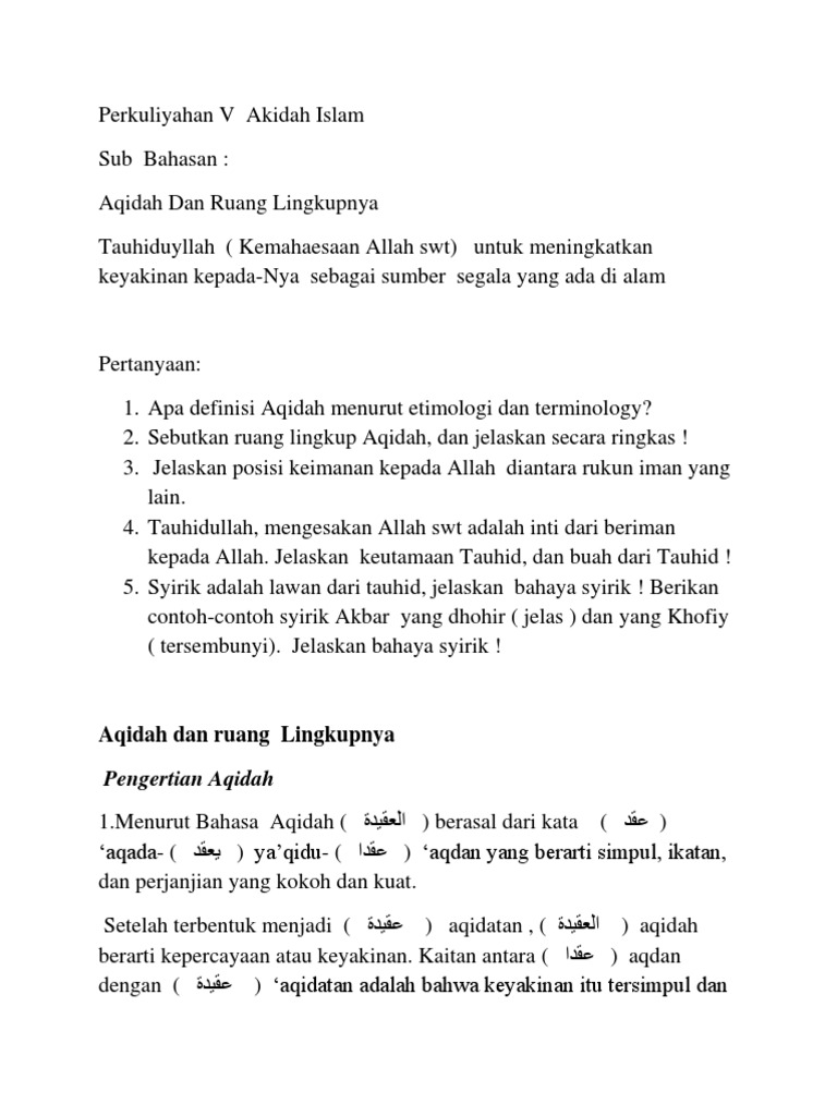 Perkuliahan V Akidah Dan Ruang Lingkupnya