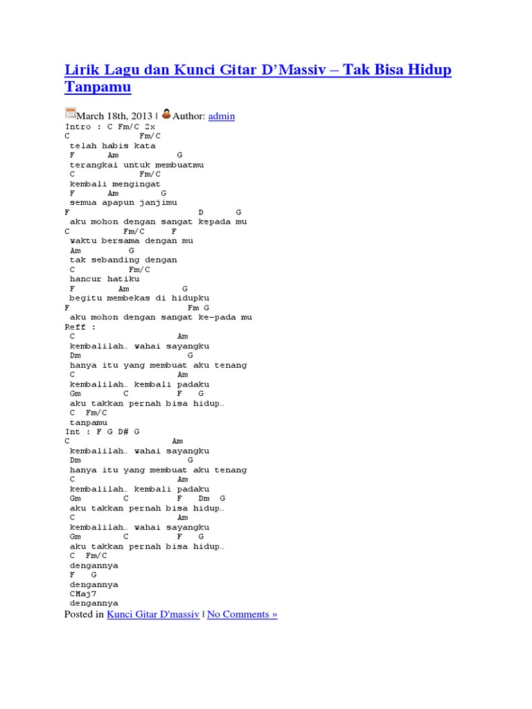 Kunci Gitar Chord Dan Lirik Lagu D Massiv Cinta Sampai Disini Tribun Video