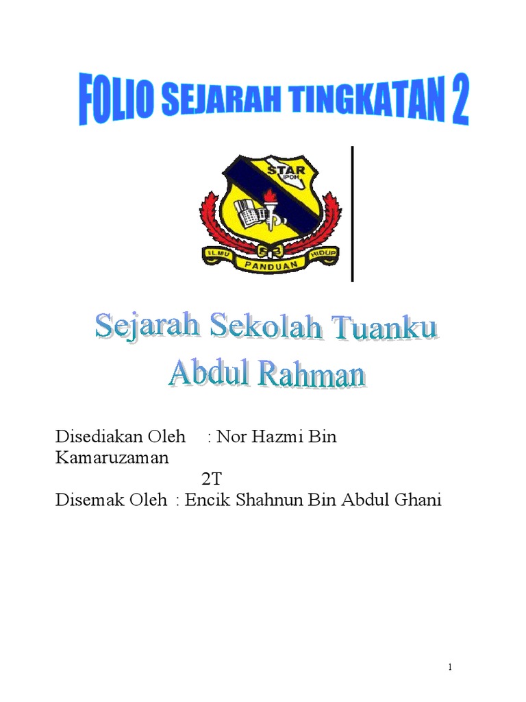 Folio Sejarah Tingkatan 2 2009 Sejarah Sekolah Tuanku Abdul Rahman Star Ipoh