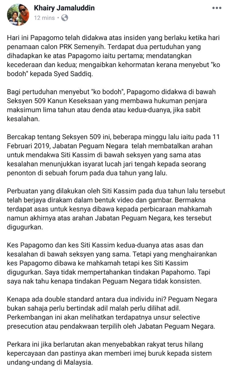 Hari Ini Papagomo Telah Didakwa Atas Khairy Jamaluddin Facebook