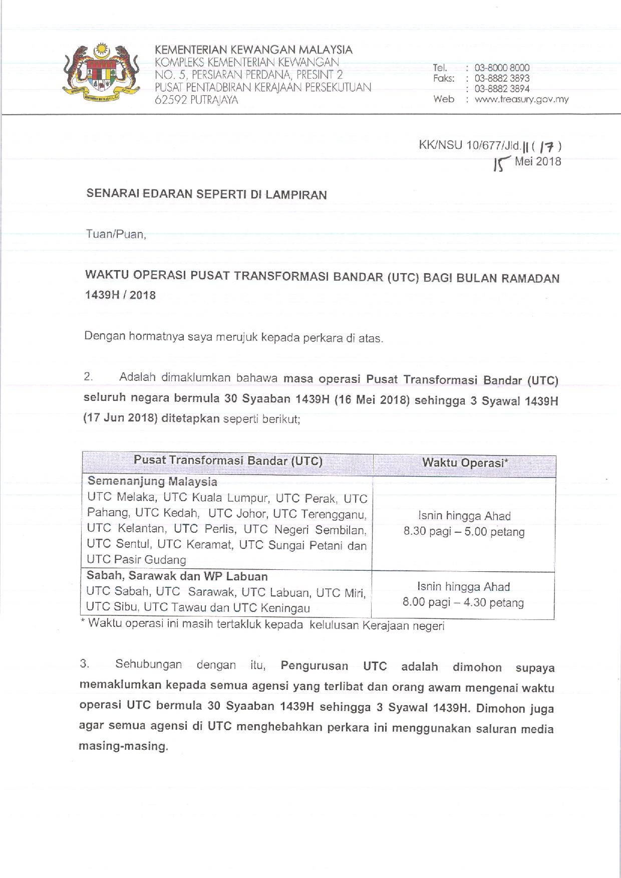 Mygcc On Twitter Pengumuman Mof Waktu Operasi Pusat Transformasi Bandar Utc Bagi Bulan Ramadan 1439h 2018