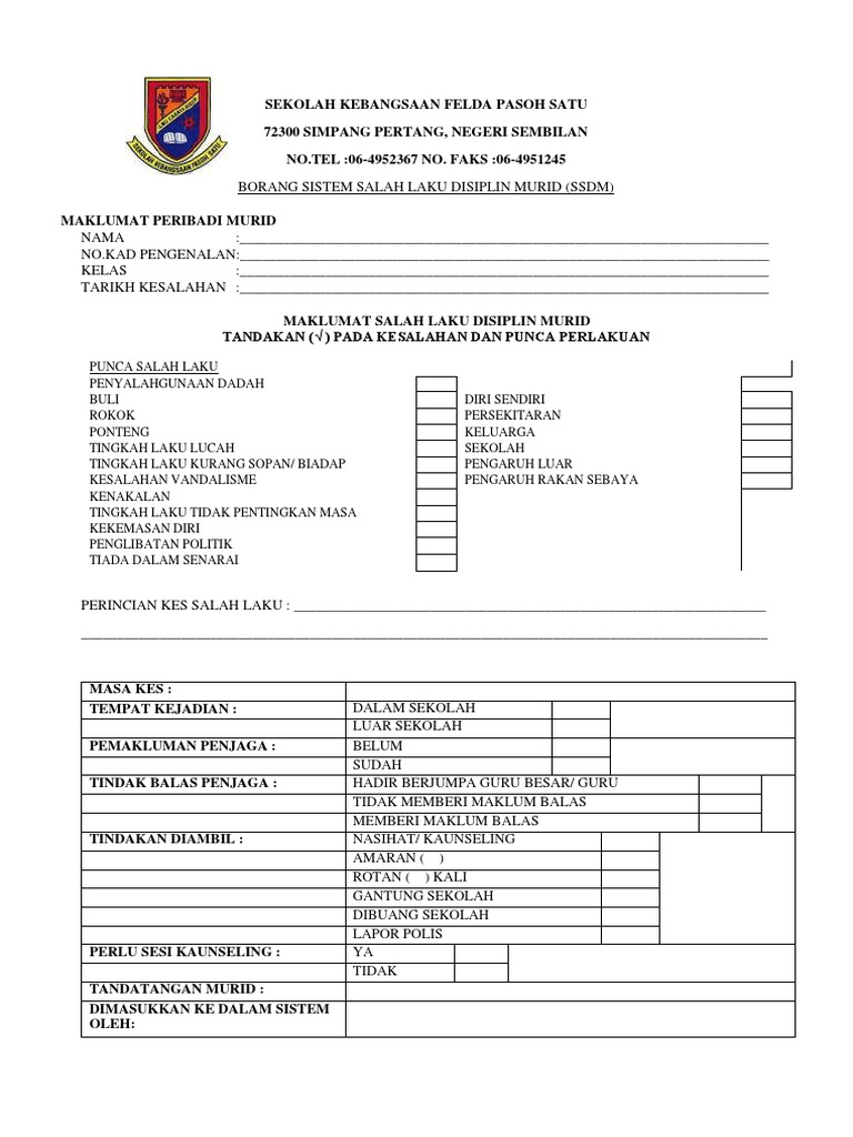 Hukuman Dan Tindakan Unit Disiplin Smk Bukit Garam 90200 Kinabatangan Sabah