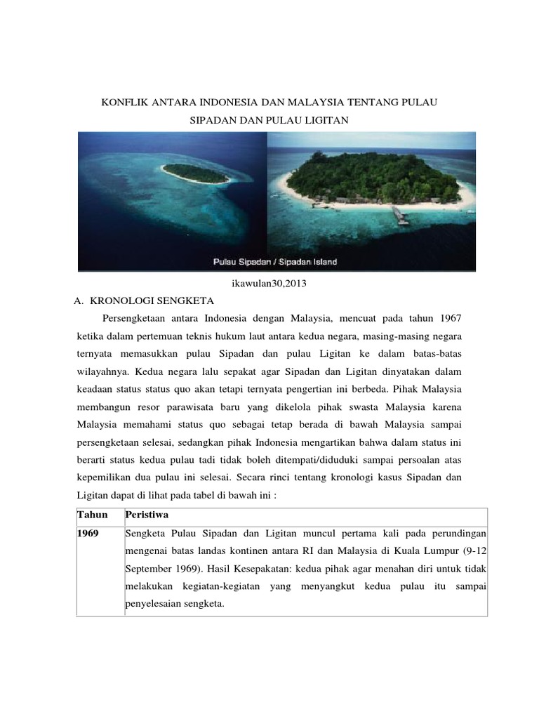 Diplomasi Indonesia Malaysia Dalam Kasus Kepemilikan Pulau Sipadan Dan Ligitan Pdf Download Gratis