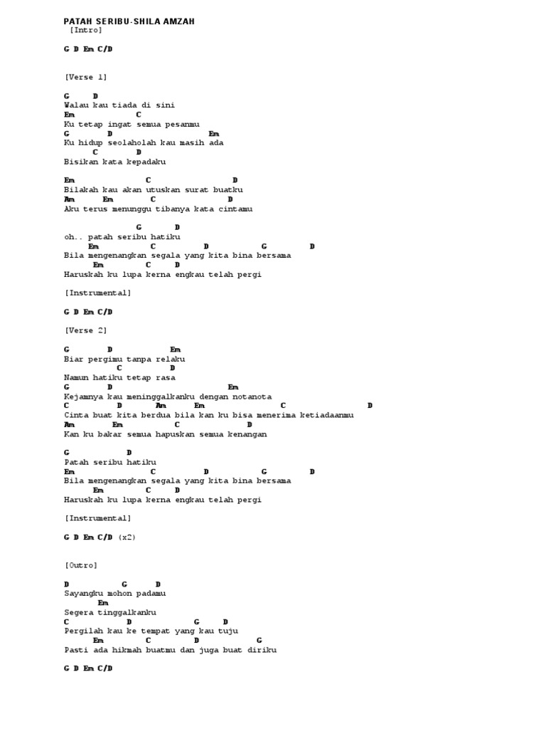 Shila Amzah Patah Seribu Lyrics Chords Chordify