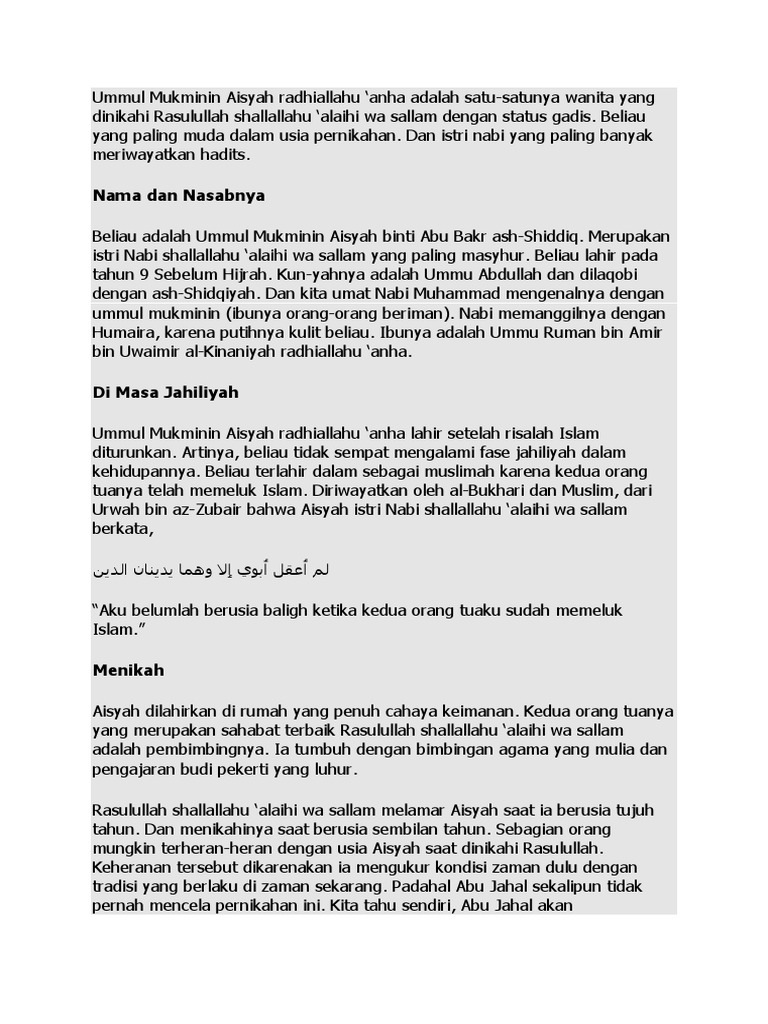 Siapa Nama Istri Nabi Muhammad Yang Paling Muda