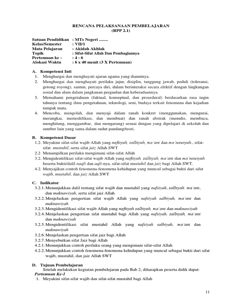 Rpp Aa Semester 1 No 2 1 Sifat Sifat Allah Dan Pembagiannya