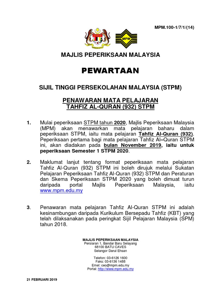 Majlis Peperiksaan Malaysia 1 Sijil Tinggi Persekolahan Malaysia Stpm 2018 Tarikh Sidang Calon Perlu Pdf Document