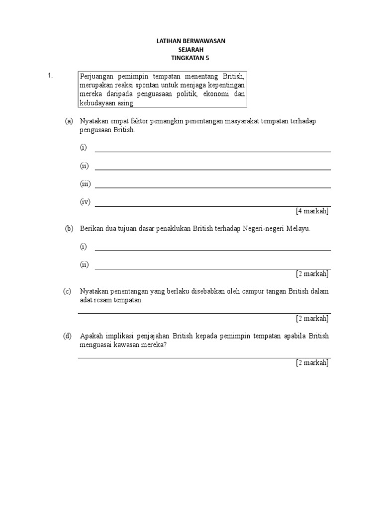 Perjuangan Tokoh Tempatan Soalan Sej Tahun 5