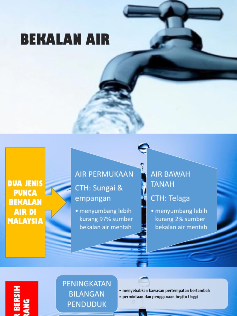 Sumber bekalan air di malaysia. Di malaysia sumber air masih lagi dianggap sebagai bekalan terbuka dan mudah diperoleh serta dibekalkan pada kos yang murah. Ia dianggarkan pada 580 km3 tahun purata 1977 2001 bersamaan dengan lebih daripada 3 000 meter padu setiap kapita dan tahun. By admin posted on august 19 2020 august 19 2020. Air selangor memaklumkan sebanyak empat loji rawatan air terpaksa dihenti tugas pagi ini susulan berlaku pencemaran yang dikesan dalam sumber air mentah di sungai selangor.