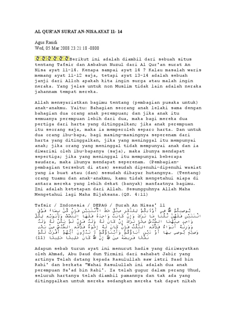 Tafsir Ibnu Katsir Surah An Nisaa Ayat 11 Alqur Anmulia