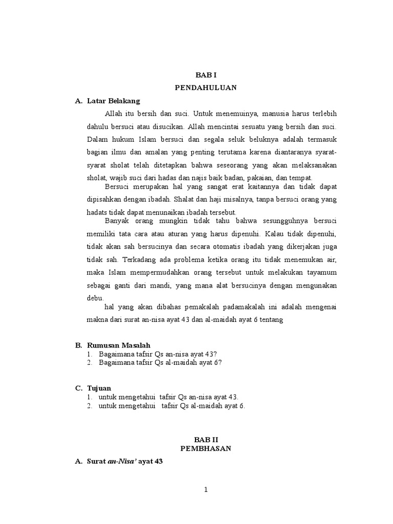 An Nisa Ayat 43 Dan Almaidah Ayat 6 Thaharah Wudhu Mandi
