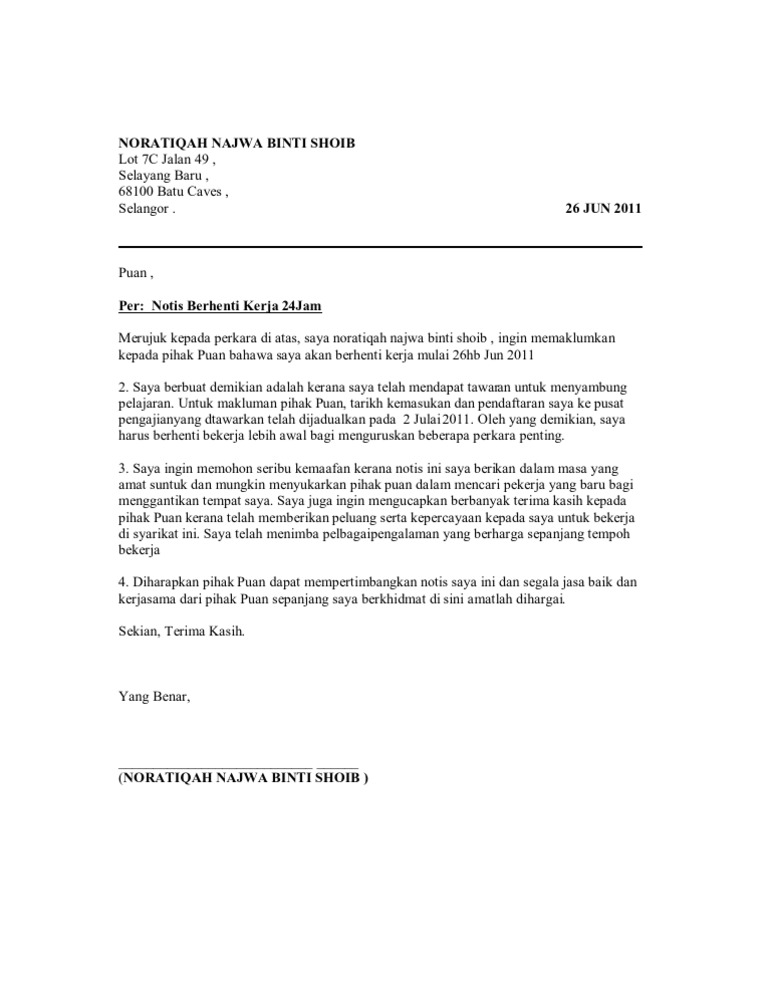 Contoh Surat Berhenti Kerja 24 Jam Bahasa Melayu Doylc Asia