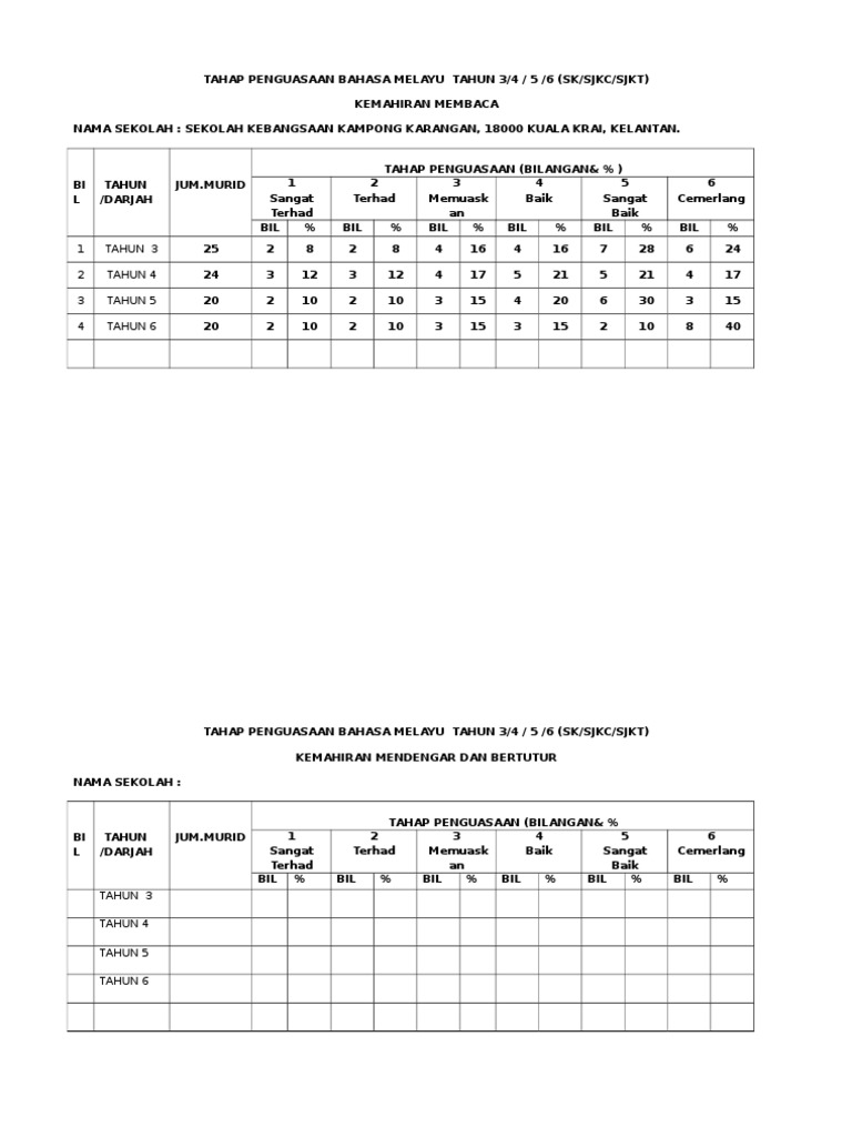 Xls Templat Pelaporan Pbd Bm Sk Tahun Cikgu Megat Idra Izwan Academia Edu