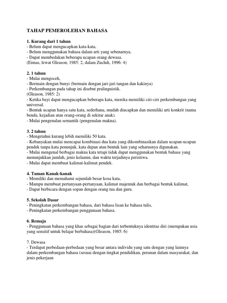 Tahap perkembangan bahasa kanak kanak. Kanak kanak yang mempunyai kemahiran bahasa yang baik lebih mudah mempelajari kemahiran membaca dan. Tahap tahap perkembangan bahasa anak diharapkan guru dapat mengetahui kebutuhan perkembangan anak dan cara menstimulasinya sesuai dengan tahapan usia anak. Selain itu dalam tahap perkembangan emosi anak juga sangat dipengaruhi oleh banyak faktor yang terkait dengan lingkungannya. Perkembangan bahasa yang unik pada usia ini seperti mulai menggunakan kata ganti saya kita dia kamu.