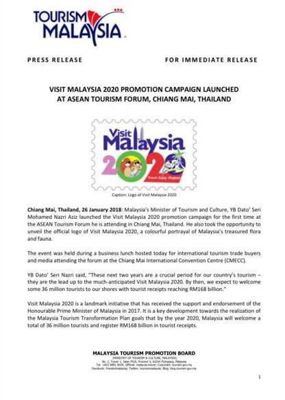 Tourism Malaysia Kempen Di Empat Negara Sepanjang Bulan Pertama Vm2020 Jabatan Penerangan Malaysia