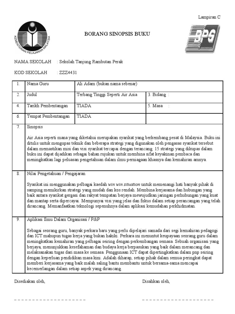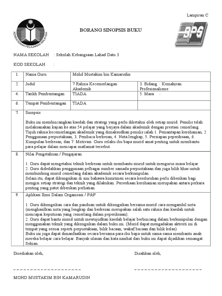 Doc Lampiran C Borang Sinopsis Buku Lizawati Masroni Academia Edu
