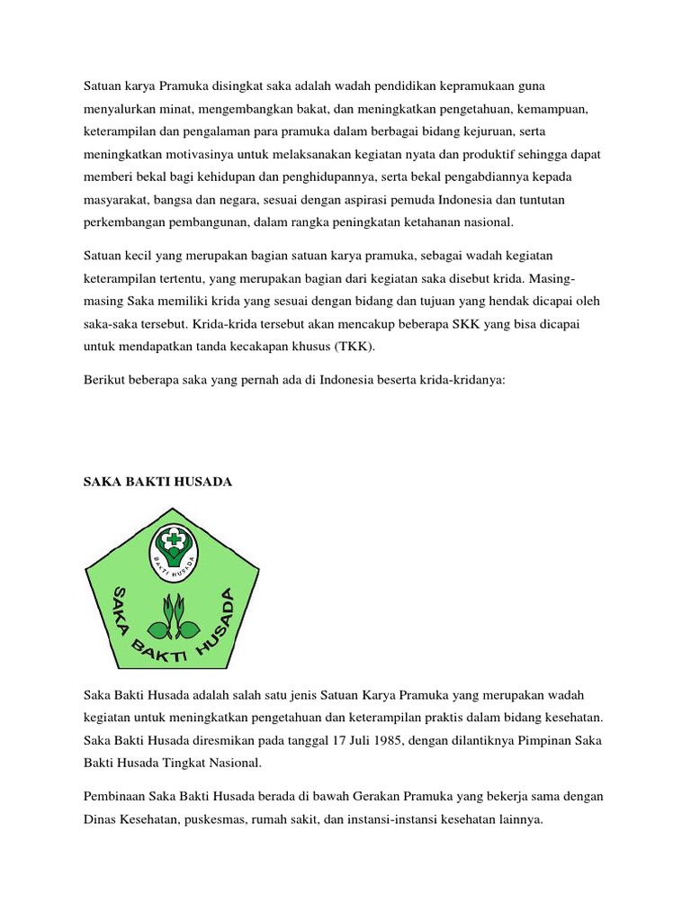 Satuan Karya Pramuka Disingkat Saka Adalah Wadah Pendidikan Kepramukaan Guna Menyalurkan Minat