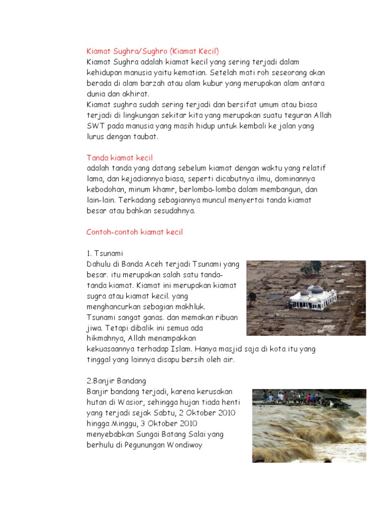 Untuk lebih mudah memahaminya berikut ini adalah penjelasan singkat mengenai tanda tanda kiamat tersebut. Terjadinya bencana alam seperti banjir tanah longsor gunung meletus gempa bumi dan tsunami yang menimbulkan korban jiwa. Adapun tanda tanda dari terjadinya kedua kiamat tersebut adalah. Tanda tanda terjadinya kiamat sugro kiamat kecil alqur an dan as sunnah menjelaskan tentang tanda tanda kiamat kecil di mana itu merupakan peristiwa atau kejadian yang biasa dialami oleh manusia bahkan umumnya manusia tidak akan menyadari kehadiran peristiwa tersebut.