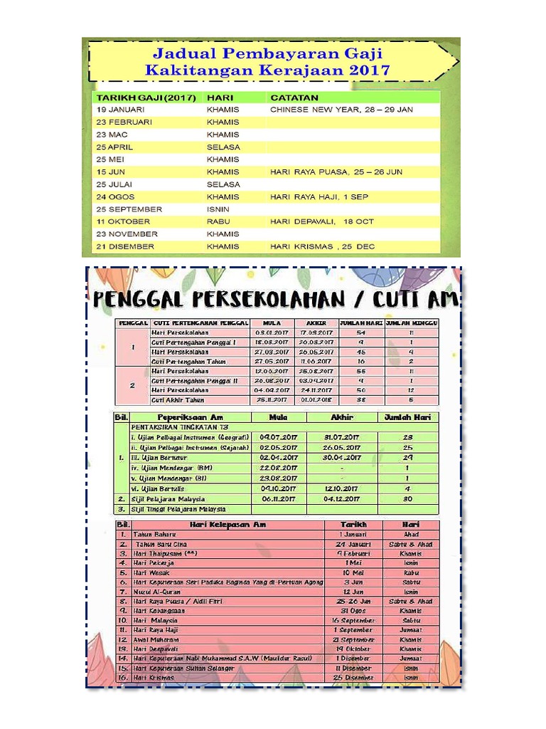 Jadual Pembayaran Gaji Penjawat Awam Tahun 2018 Cikgu Share Cute766