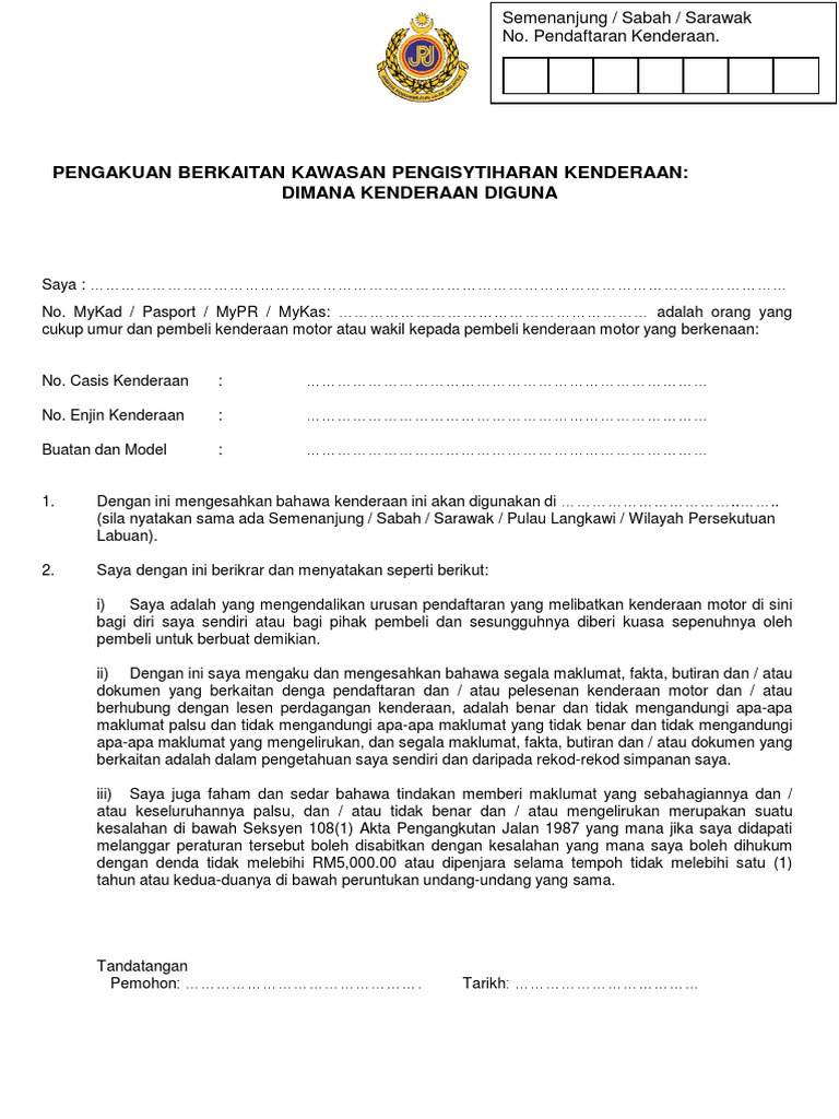 Borang Perisyitiharan Kenderaan Luar Kawasan