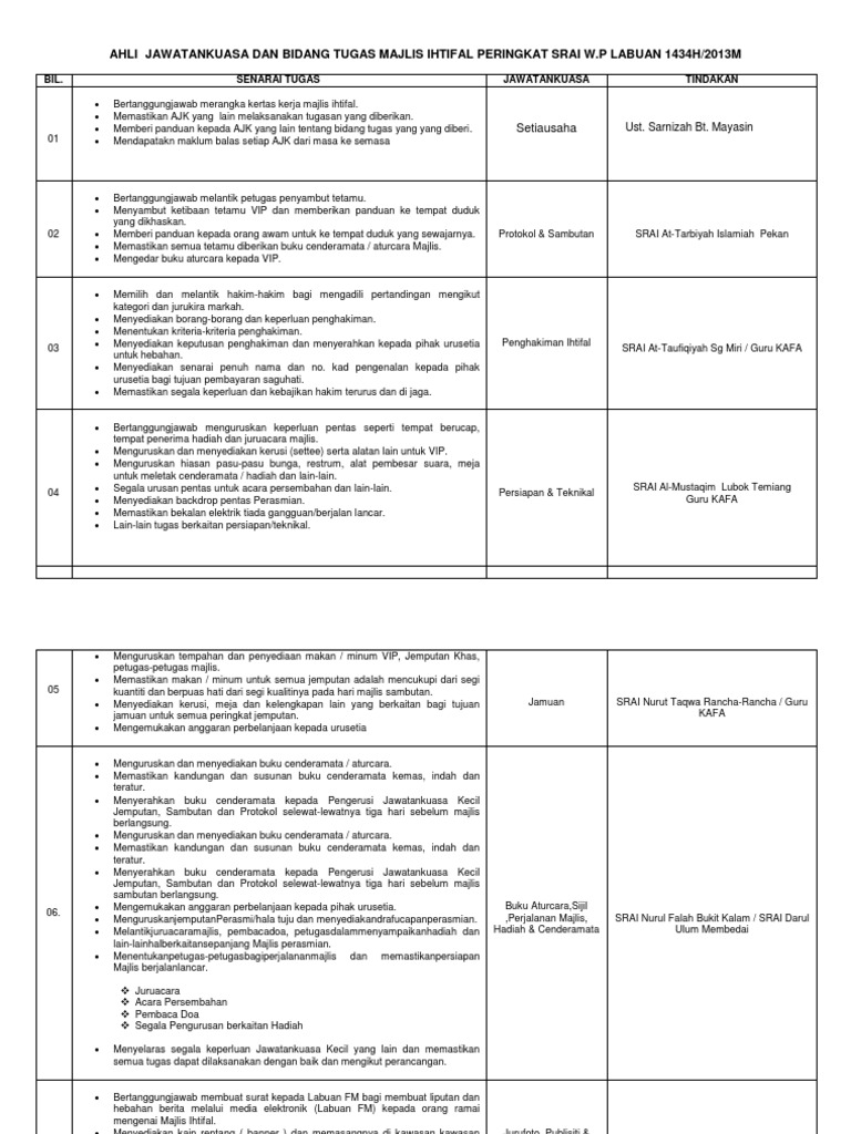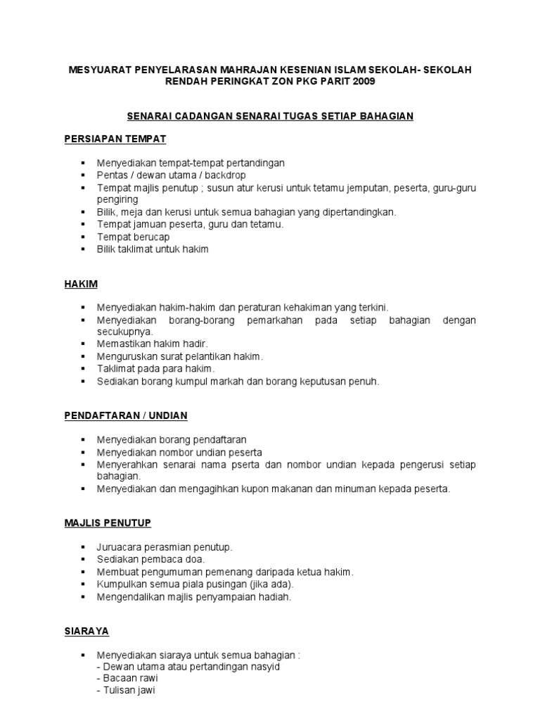 Mahrajan Kesenian Islam Sekolah Senarai Agihan Tugas