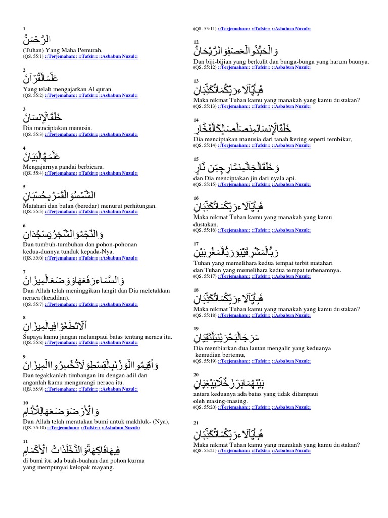 Surat Ar Rahman 1 78 Dan Artinya Kumpulan Surat Penting