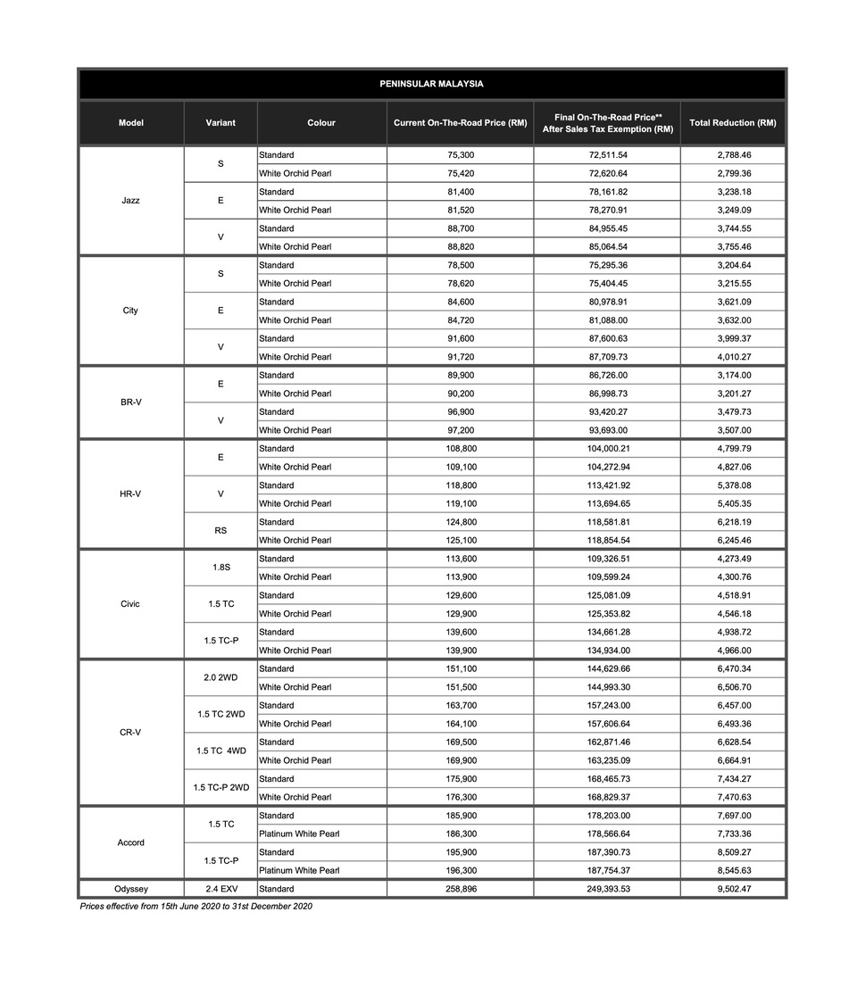 Honda Malaysia Umum Senarai Harga Dengan Sst Ada Model Ckd Rm4 9k Lebih Murah Cbu Naik Rm10k Paultan Org