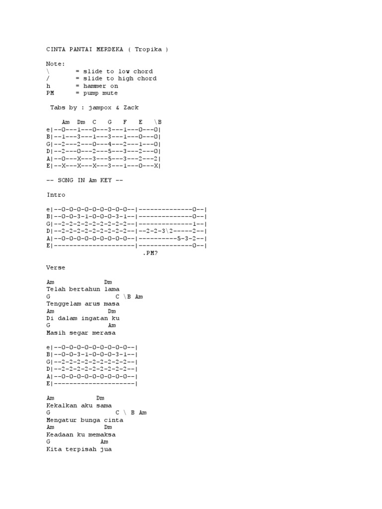 Tropika Cinta Pantai Merdeka Chord Gitar Kord Melayu Malay Guitar Chords Archive
