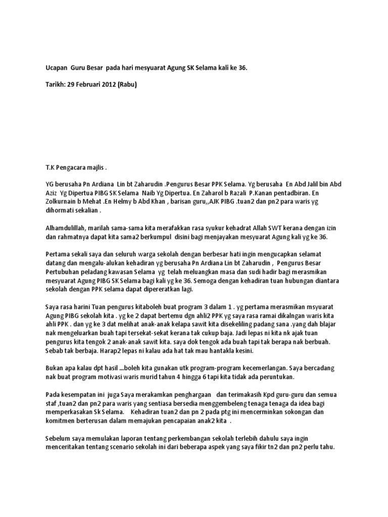Teks Ucapan Guru Besar Di Mesyuarat Agung Pibg Typo Hijabs