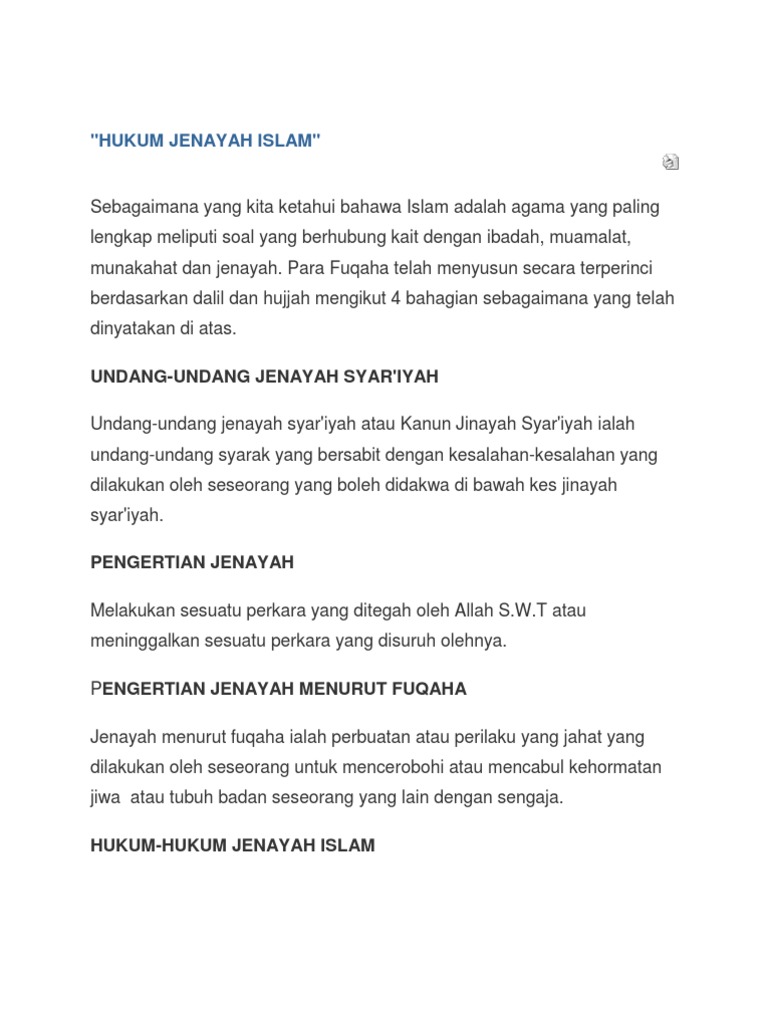 Undang Undang Jenayah Islam By Paizah Haji Ismail