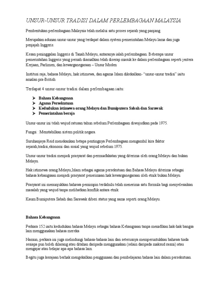 Unsur Tradisi Perlembagaan Malaysia Pdf Document