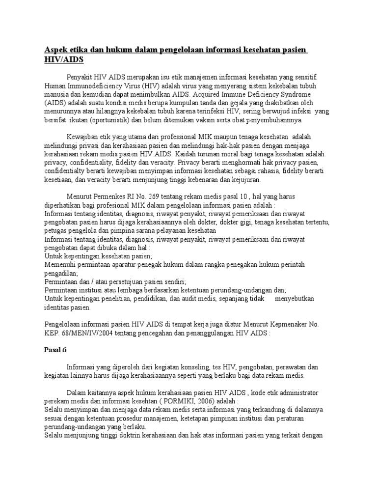 Human immunodeficiency virus hiv adalah sejenis retrovirus yang menjangkiti sel sel imun dalam badan manusia sehingga membawa kepada acquired immunodeficiency syndrome aids. Ditambah lagi arus imigrasi dan urbanisasi yang yang cepat memicu intensitas penyebaran dan penularan penyakit tertentu termasuk penyakit yang amat berbahaya yakni aids. Aids adalah keadaan di mana sistem imun seseorang berterusan untuk gagal dan tidak lagi berupaya untuk melindungi seseorang itu sehinggakan jangkitan oportunistik dan juga barah boleh berlaku. Sebabnya bermacam masalah kesehatan telah memengaruhi eksistensi berbagai kalangan masyarakat.