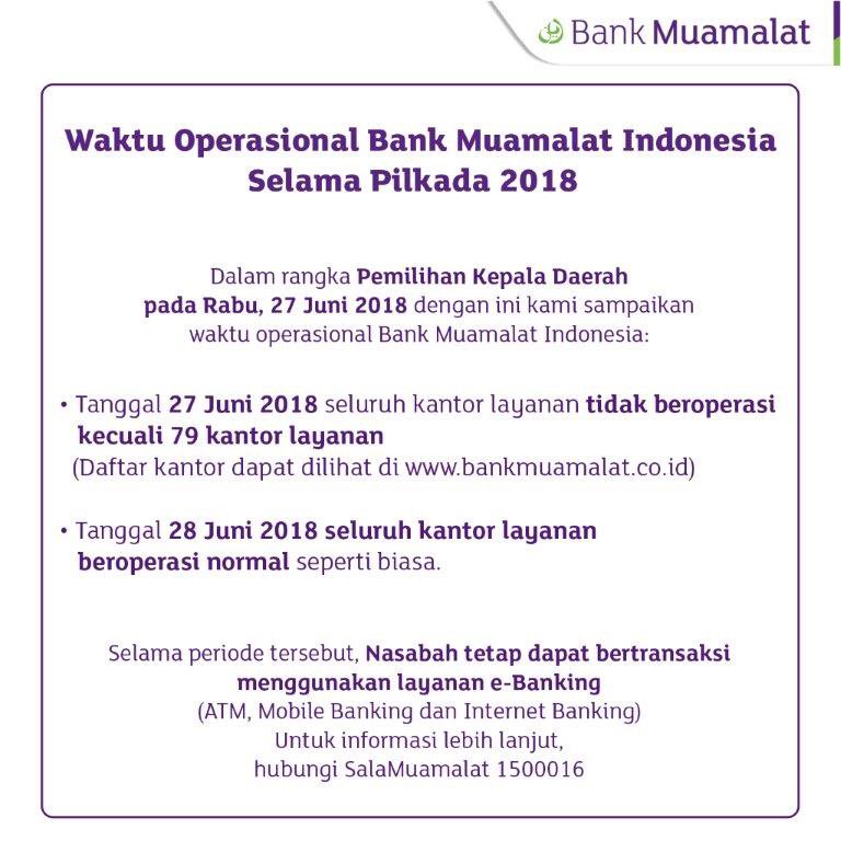 Bank Muamalat On Twitter Assalamualaikum Bmers Dalam Rangka Pemungutan Suara Pilkada Serentak Pada Rabu 27 Juni 2018 Dengan Ini Kami Sampaikan Waktu Operasional Bank Muamalat Indonesia Bankmuamalat Muamalat Pilkada Https T Co Disszd13vt