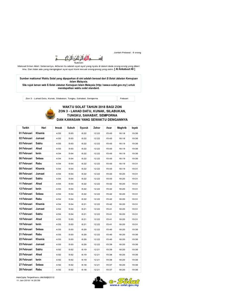 Waktu Solat Bagi Kawasan Lahad Datu Silabukan Kunak Sahabat Semporna Tungku Waktu Solat Dot Net