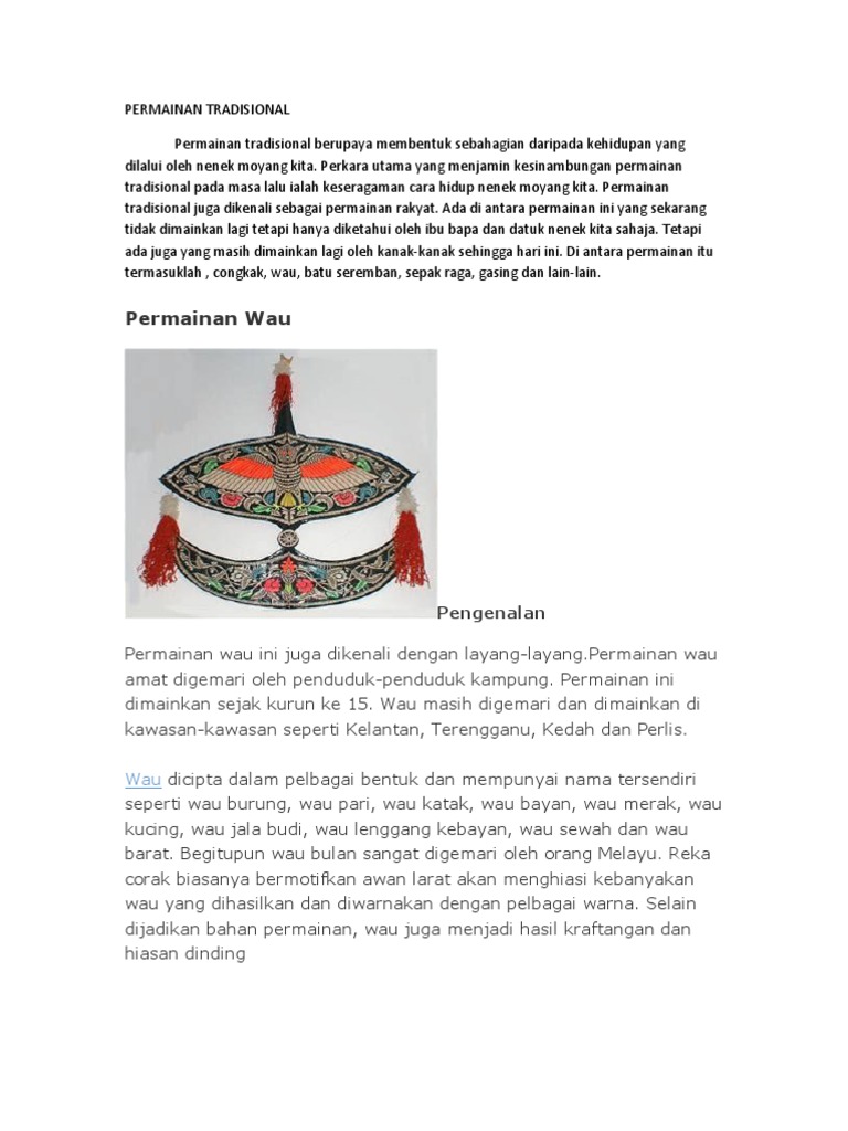 Permainan Tradisional Permainan Tradisional Di Malaysia