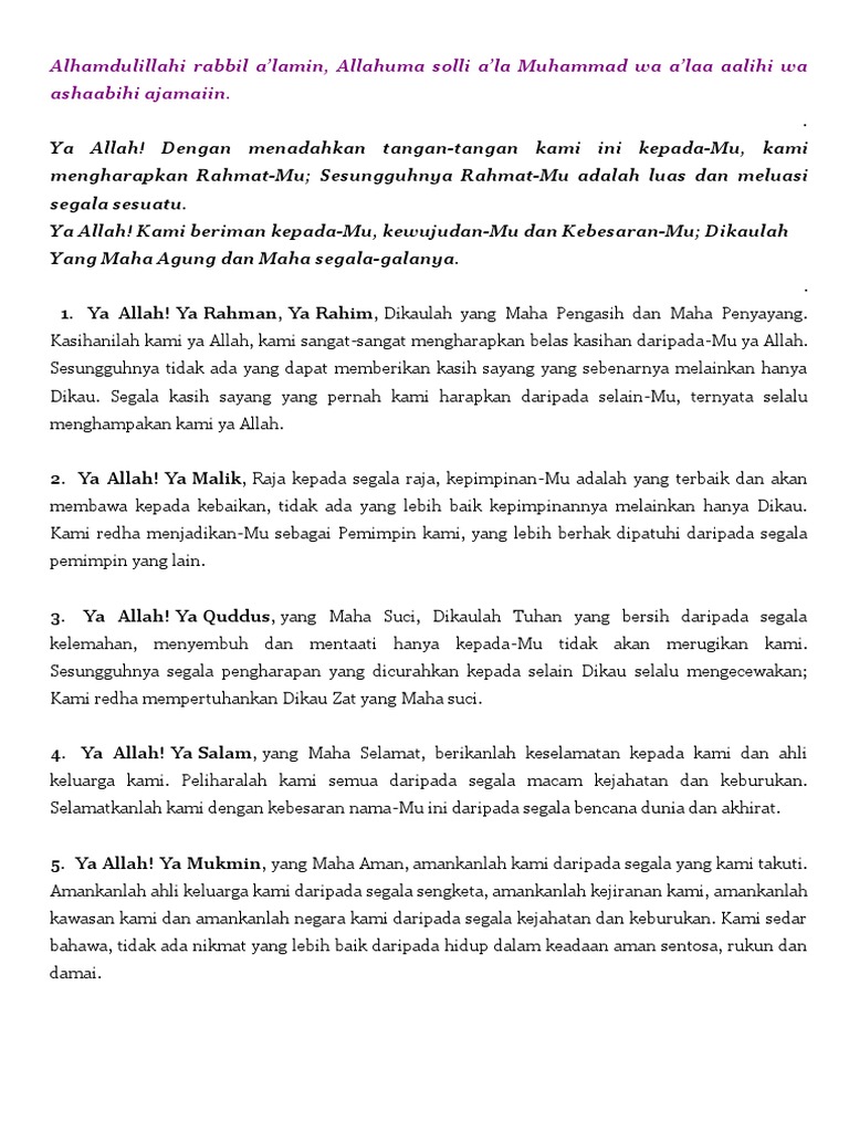Ya Allah Ya Rahman Ya Rahim Ya Malik Ya Quddus Ya Salam Ya Mukmin Ya Muhaimin